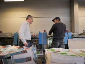 L'ETA, anciennement appelé Atelier Protégé, est au coeur du processus de production. Mais, par exemple, dans le cas des manipulations du papier, elle n'imprime pas. Et ce pour une bonne raison. "Nous n'avons pas la capacité d'imprimer et, surtout, nous ne le voulons pas. Sinon, on va devenir des concurrents de nos clients. Ça ne va pas. Nous sommes un segment spécifique complémentaire aux imprimeurs", explique le patron de l'ASBL, de facto sans actionnariat à rémunérer, qui compte, donc, 84 personnes en situation de handicap plus des encadrants. Des moniteurs, présents à chaque poste, au comptable en passant par le DRH et l'assistant social, par exemple. "Nous l'avons engagé il y a deux ans, ce qu'une entreprise classique ne ferait pas. Il leur rend beaucoup de services, pour leur facture d'électricité par exemple. Des actes qui sont banals pour nous mais qui sont une montagne pour eux. Ça influe d'ailleurs sur la production car quand ils ont ce genre de problèmes, parfois ils travaillent moins bien. On creuse un peu et on comprend ce qui se passe. Évidemment, ils viennent avec le document et on voit que ce n'est pas bien grave."
